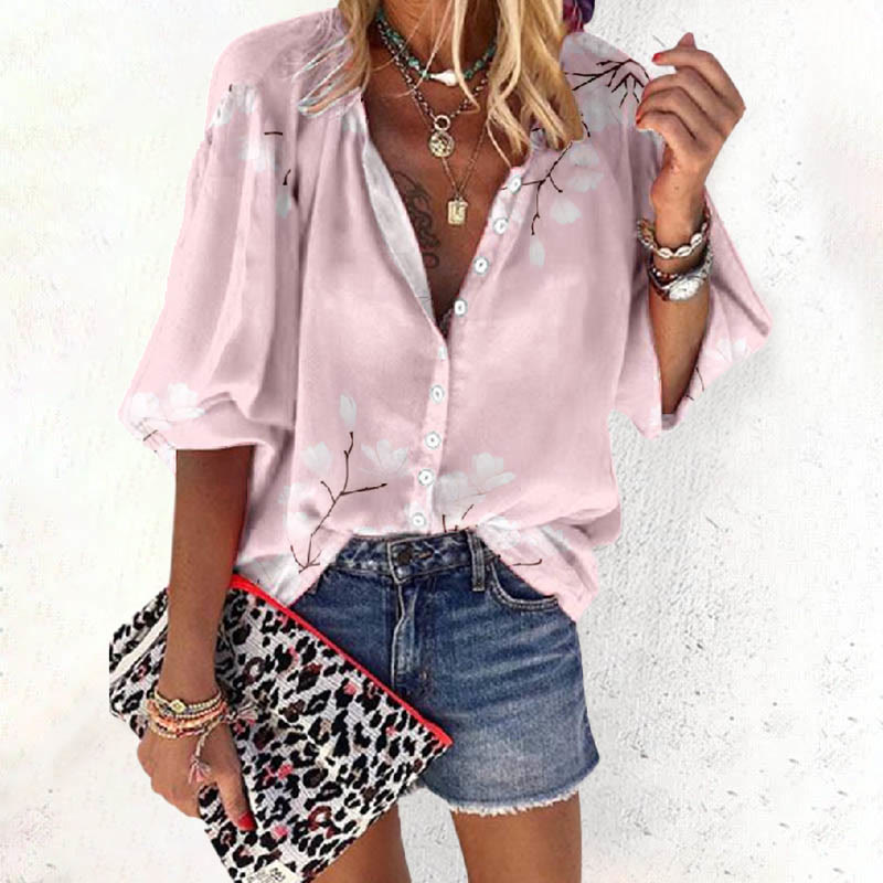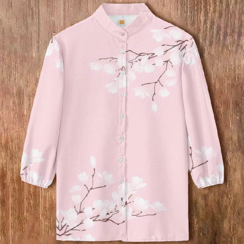 Dashingsoul Women's Japanese Sakura Art Print Casual 3/4 Sleeve Blouse