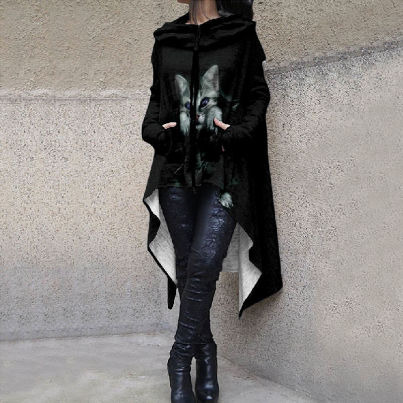 Dashingsoul Women's Japanese Vintage Cute Lazy Cat Print Casual Hoodie