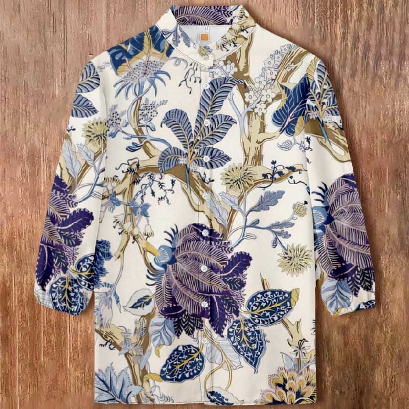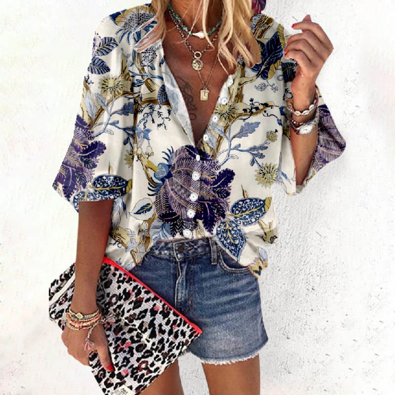 Dashingsoul Women's Lovely Insect And Leaf Pattern Print Casual 3/4 Sleeve Blouse