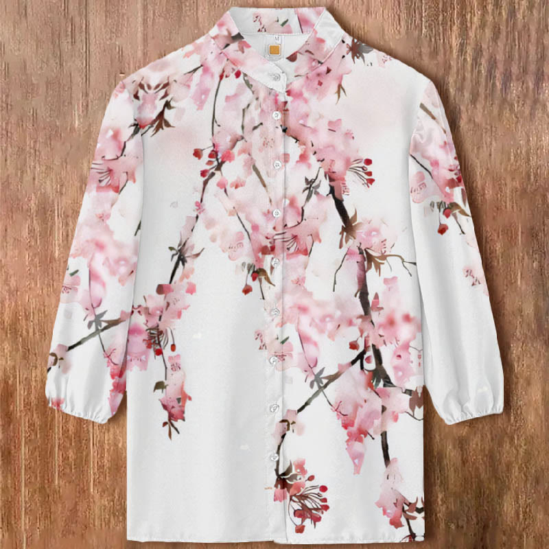 Dashingsoul Women's Lovely Pink Sakura Art Print Casual 3/4 Sleeve Blouse