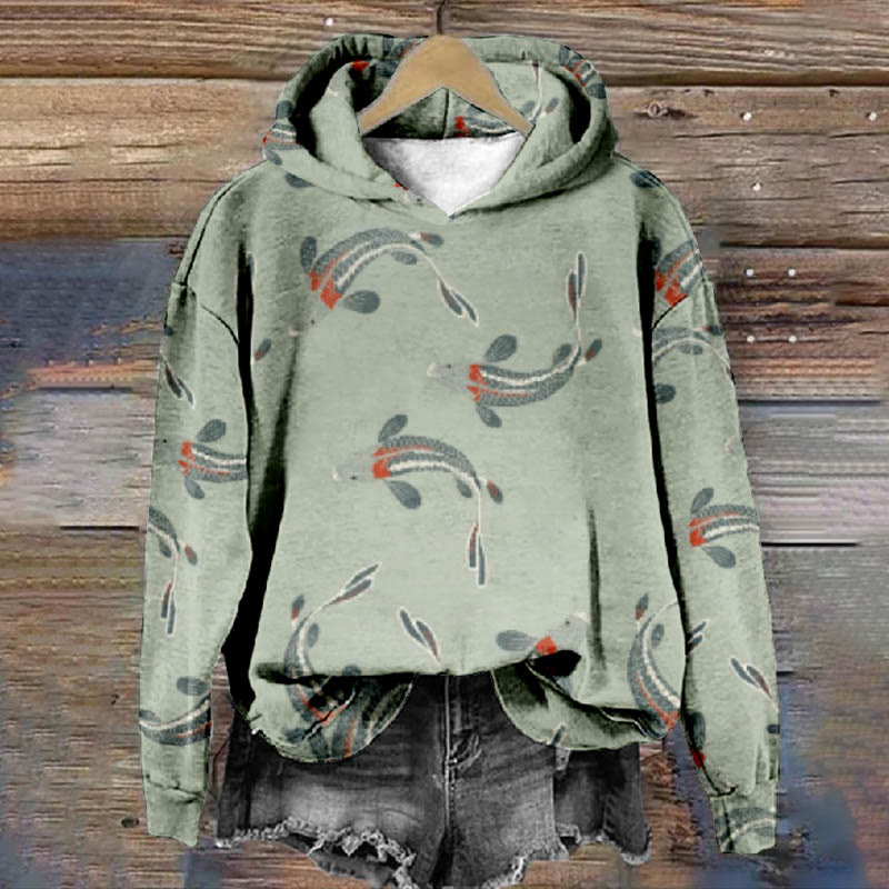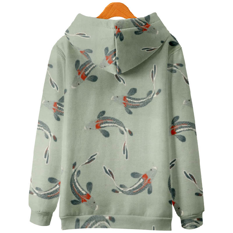 Dashingsoul Women's Lovely Swimming Koi Fish Print Casual Long Sleeve Hoodie