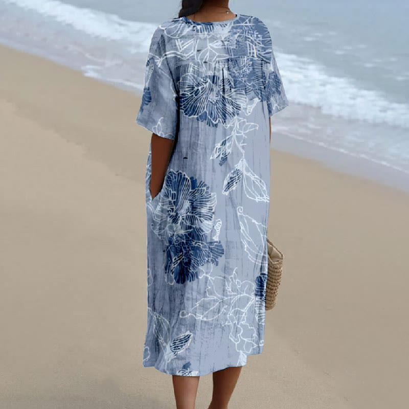 Dashingsoul Women's Oil Painting Floral Art Print V-neck Short Sleeved Casual Midi Dress
