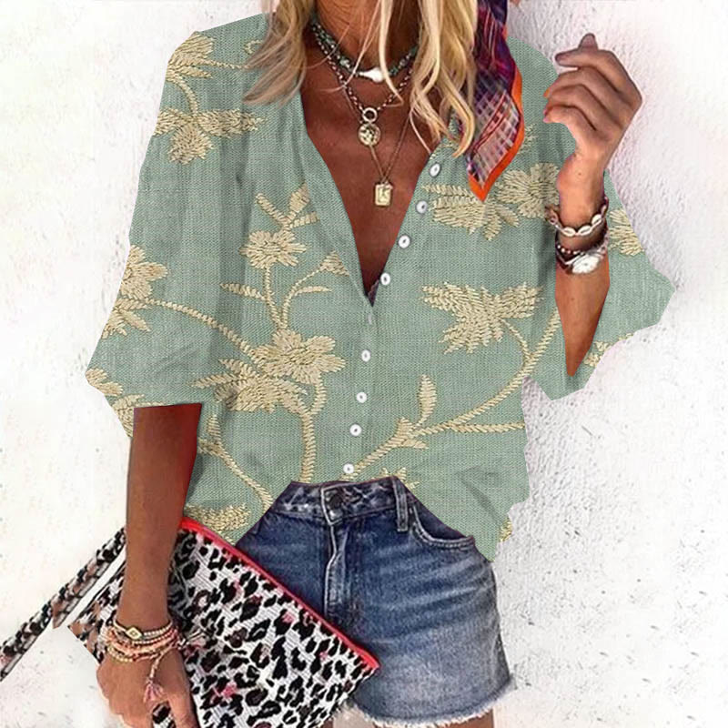 Dashingsoul Women's Retro Floral Art Print Casual 3/4 Sleeve Blouse