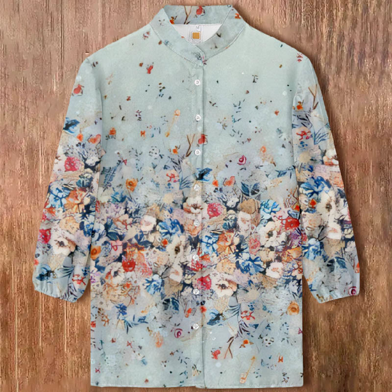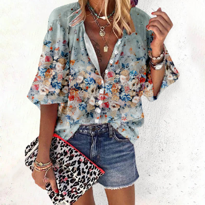 Dashingsoul Women's Romantic Colorful Floral Holiday Print Casual 3/4 Sleeve Blouse