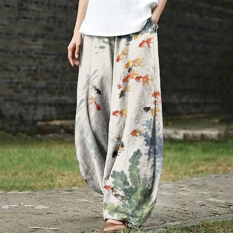 Dashingsoul Women's Watercolor Goldfish Art Print Casual Pants
