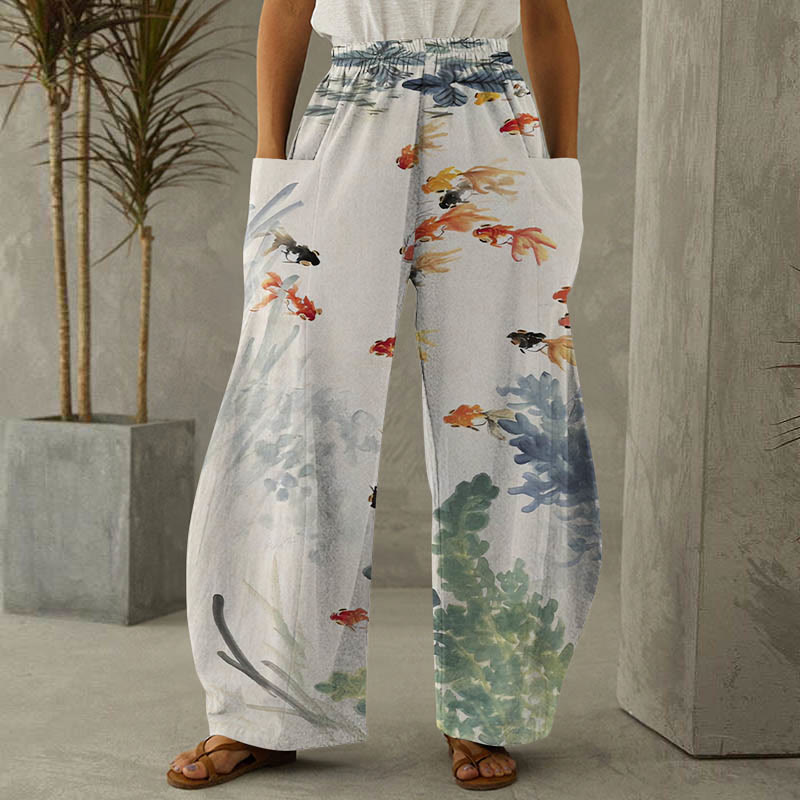 Dashingsoul Women's Watercolor Goldfish Art Print Casual Pants