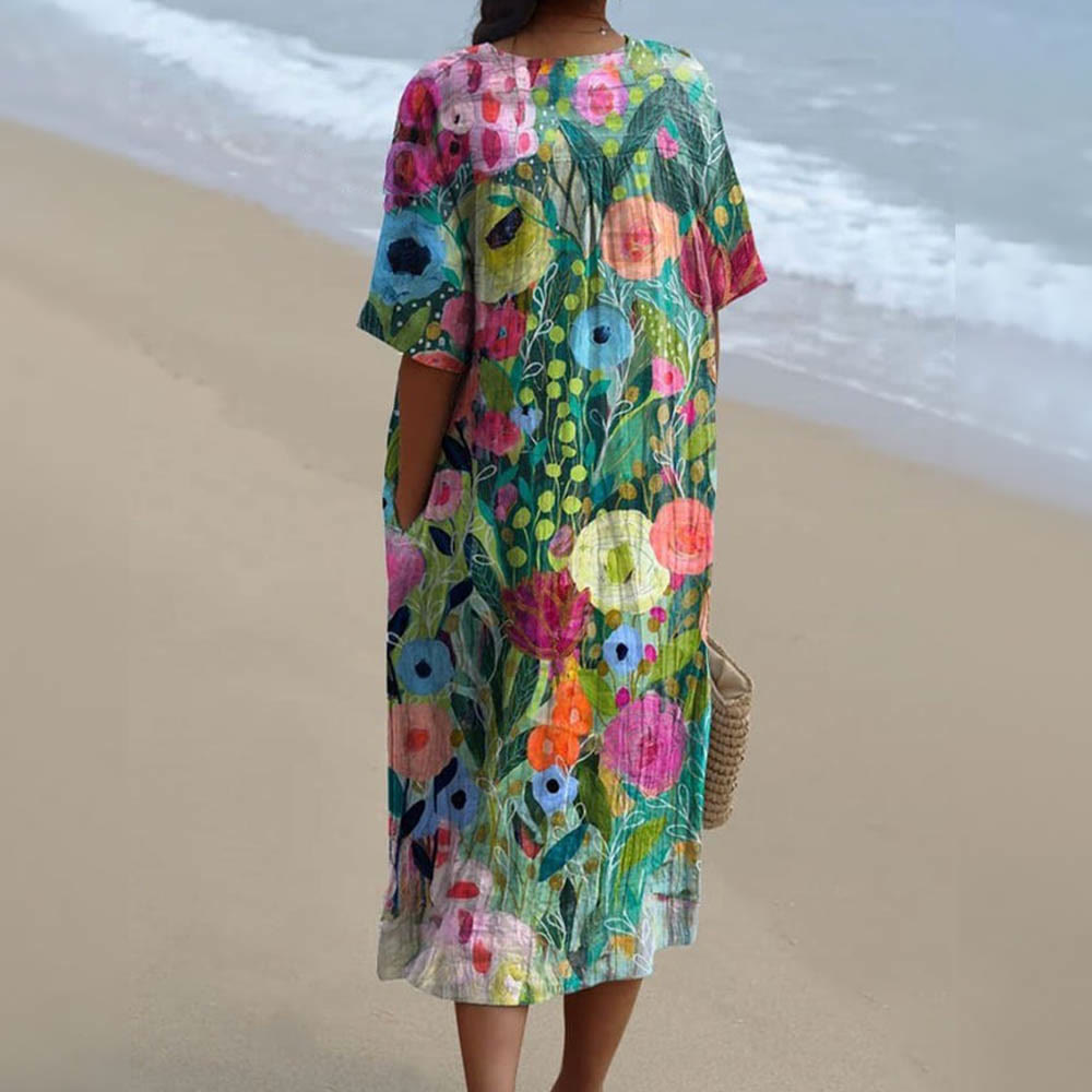Dashingsoul Women's Watercolor Splash Fluid Art Print Flowy Dress