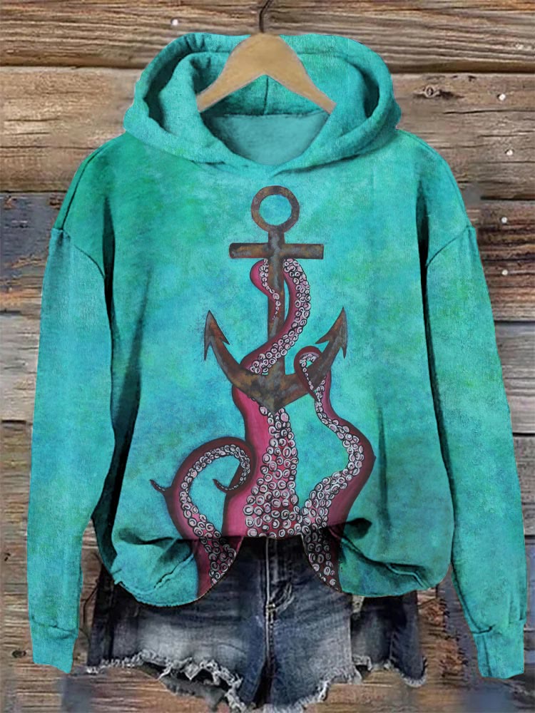 Dashingsoul Octopus Anchor Marine Print Casual Hoodie