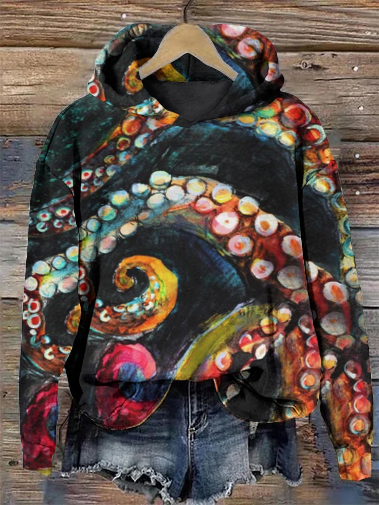 Dashingsoul Colorful Octopus Art Painting Printed Hoodie
