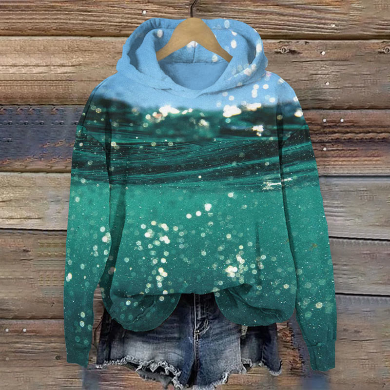 Dashingsoul Fantasy Ombre Ocean Starry Sky Sea Turtle Print Long Sleeve Casual Hoodie