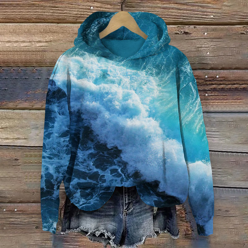 Dashingsoul Wave Ombre Print Comfy Hoodie