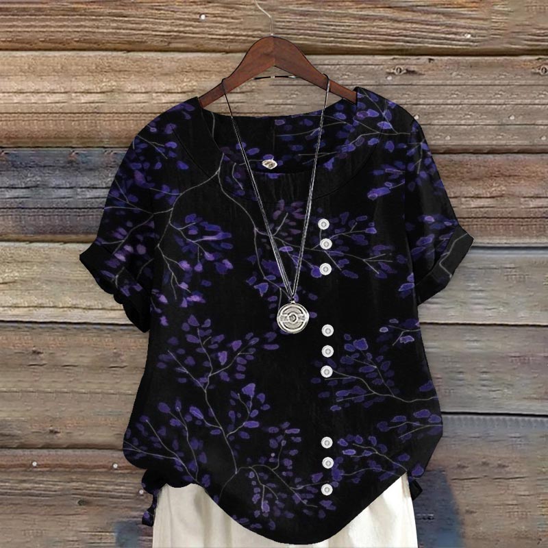Dashingsoul Vintage Floral Art Print Casual Short Sleeve Blouse