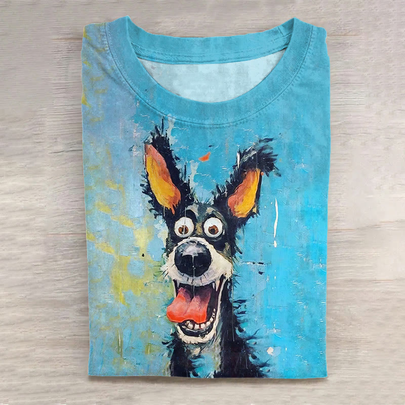 Dashingsoul Art Dog Print Round Neck Print T-shirt