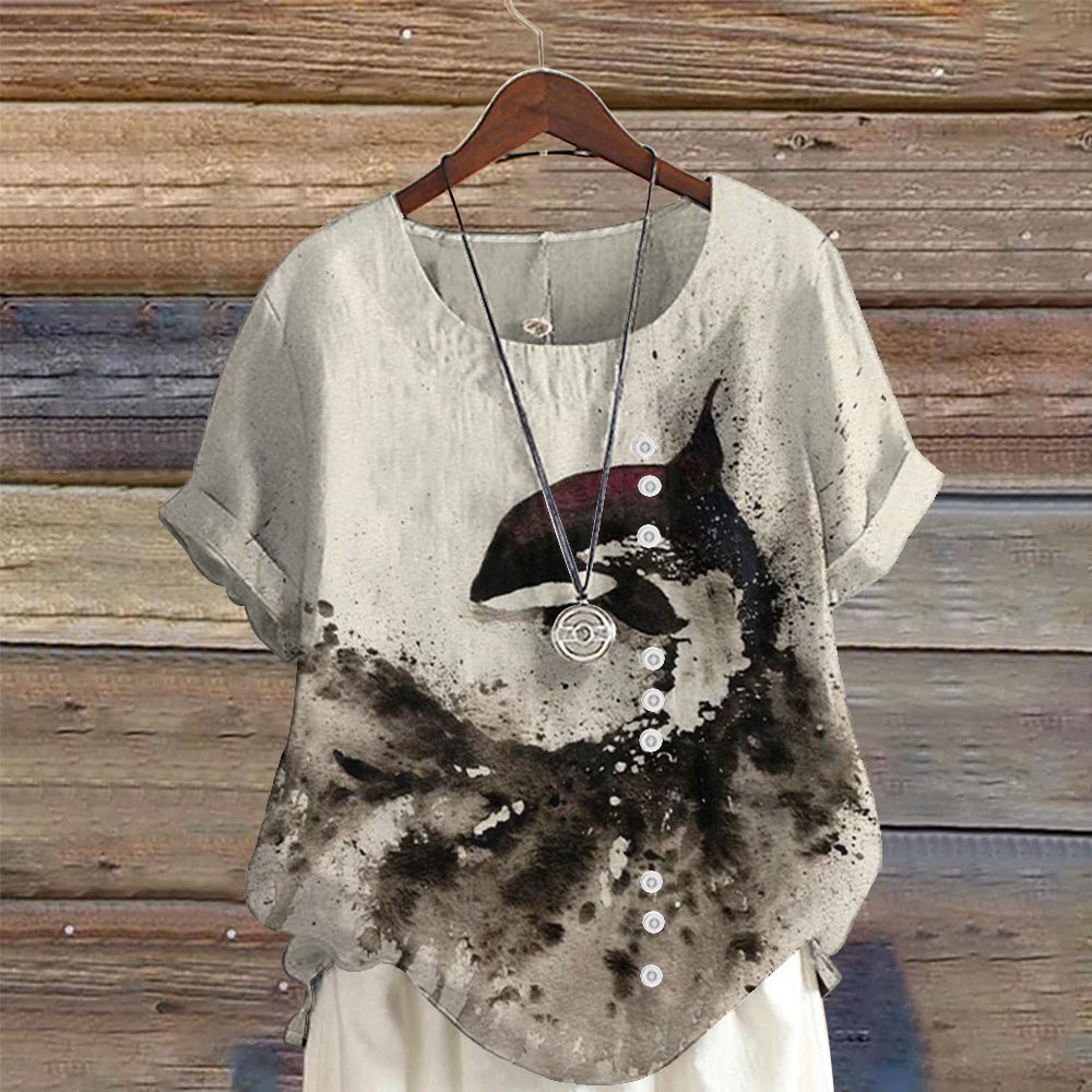 Dashingsoul Watercolor Splash Whale Print Short Sleeve Blouse