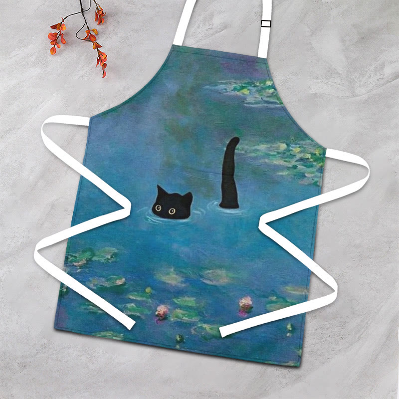 Dashingsoul Women's Oli Painting Swimming Cat Apron
