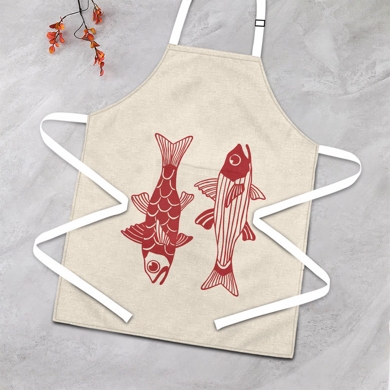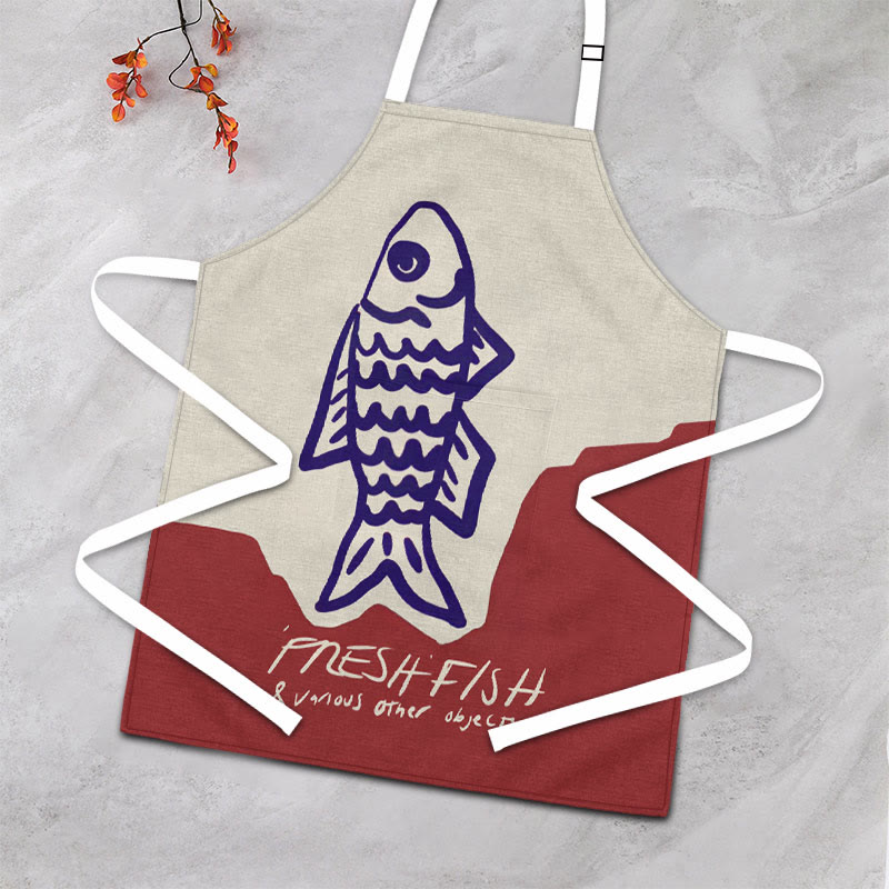 Dashingsoul Vintage Sketch Drawing Red Fish Art Apron