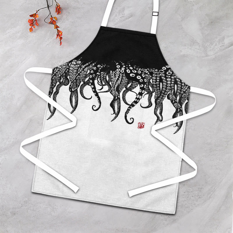 Dashingsoul Ink Watercolor Black Octopus Art Apron