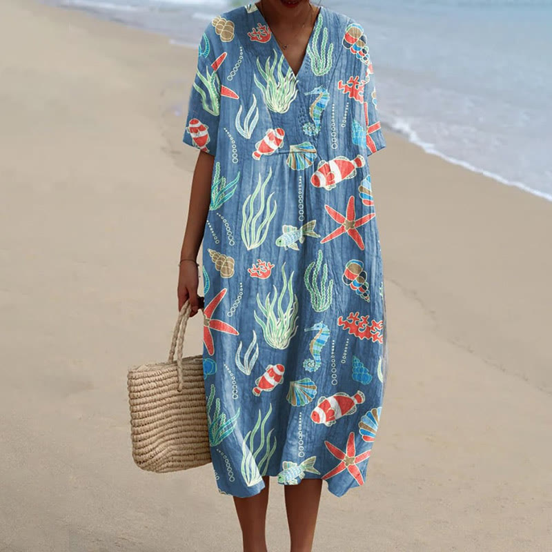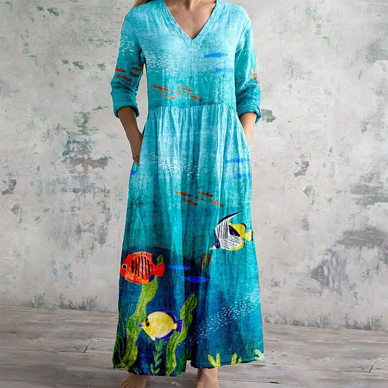 Women's Undersea Tropical Fish Print Casual V-neck Dress