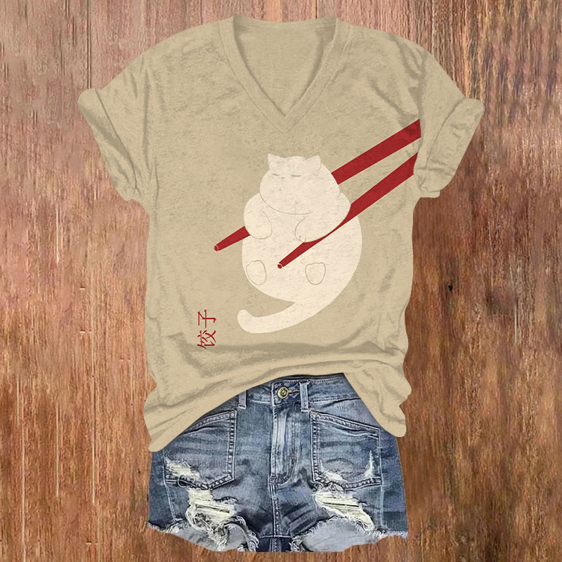 Dashingsoul Cat Dumpling Art Print Short Sleeve V-neck T-shirt