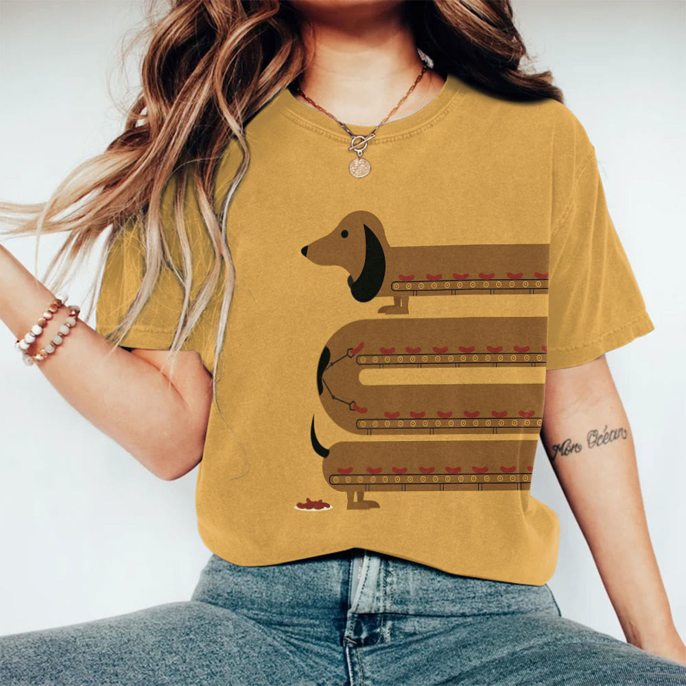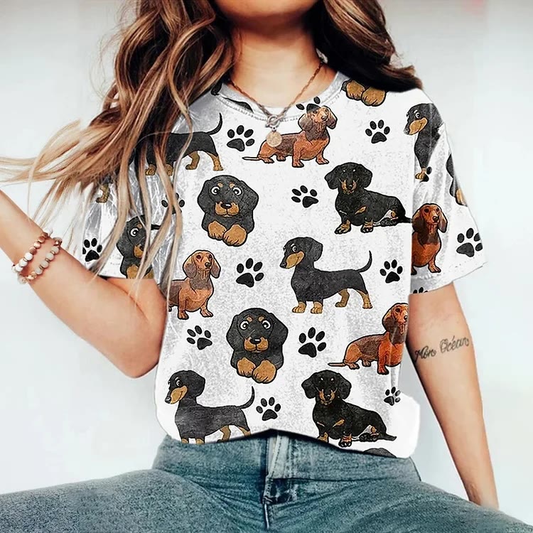 Dashingsoul Women's Dachshund Print Casual T-Shirt