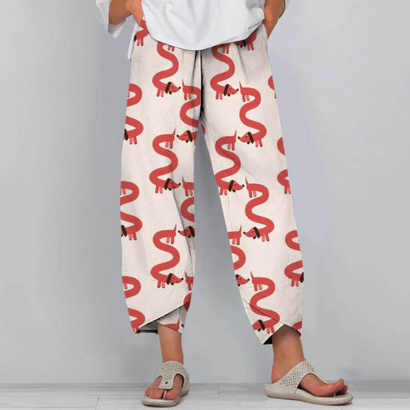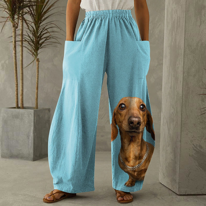 Dashingsoul Dachshund With Necklace Print Casual Wide-leg Pants