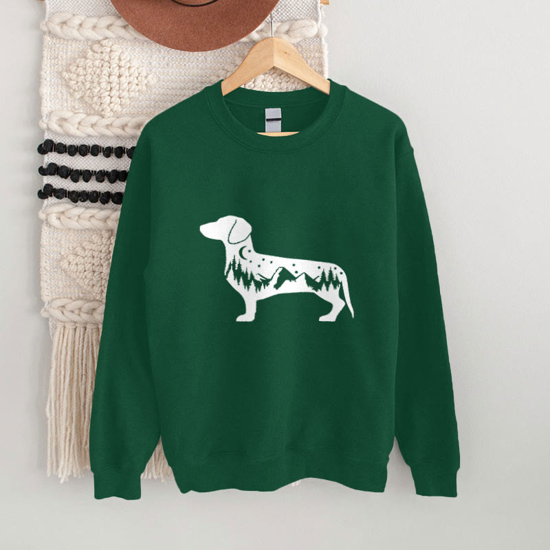 Dashingsoul Cotton Dachshund Mountain Scenery Silhouette Art Print Casual Fleece Sweatshirt