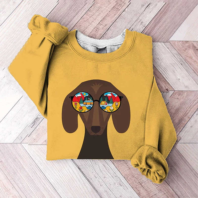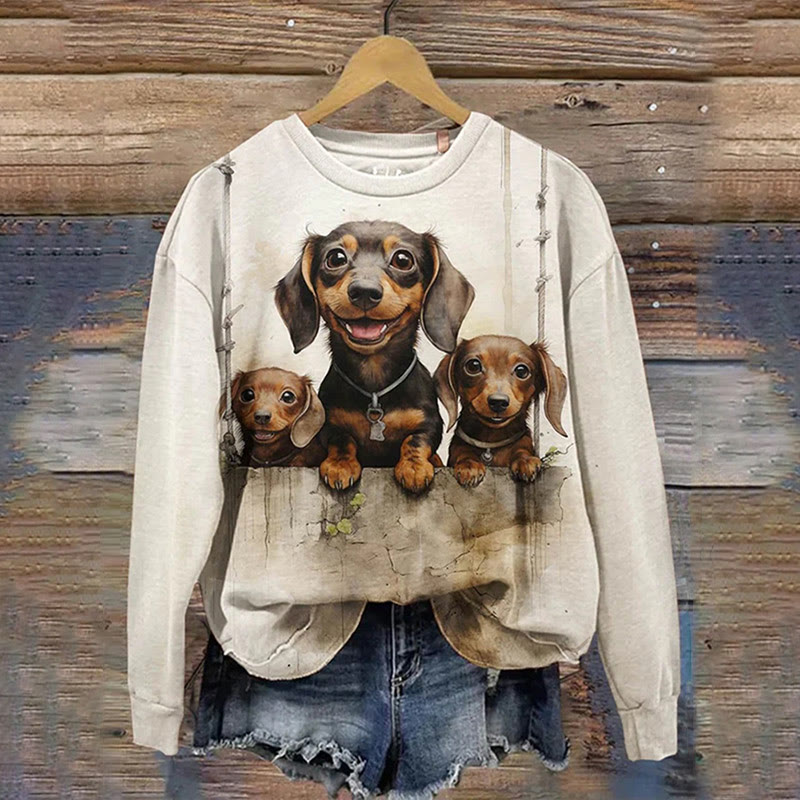 Dashingsoul Cute Dachshund Print Casual Long Sleeve Sweatshirt