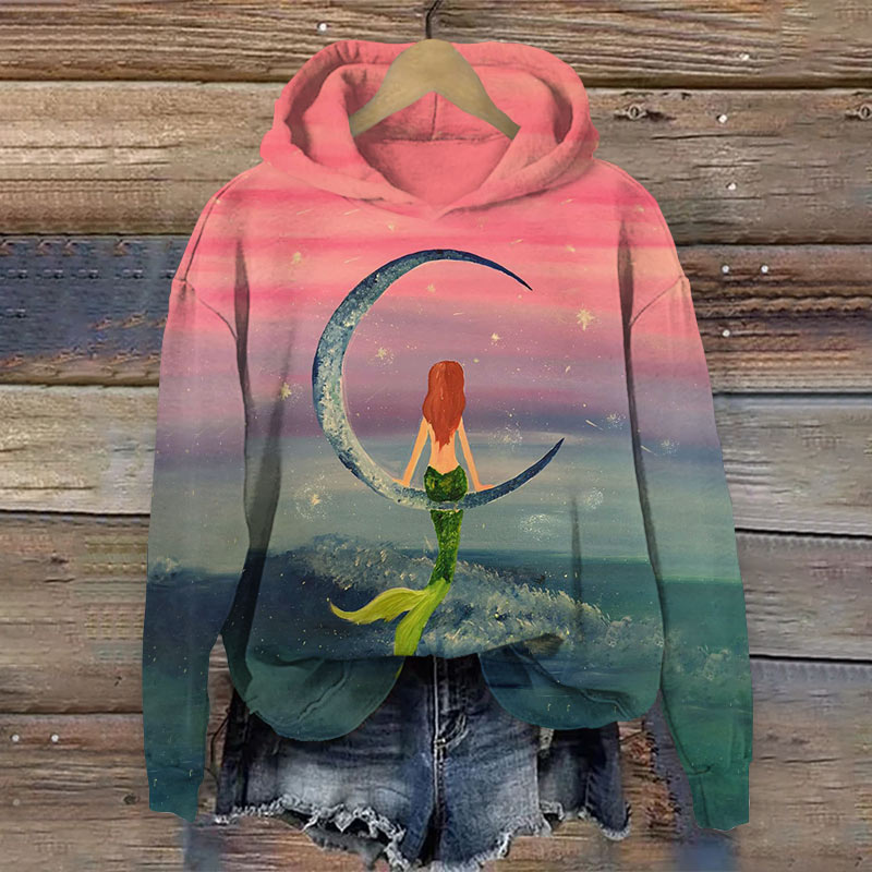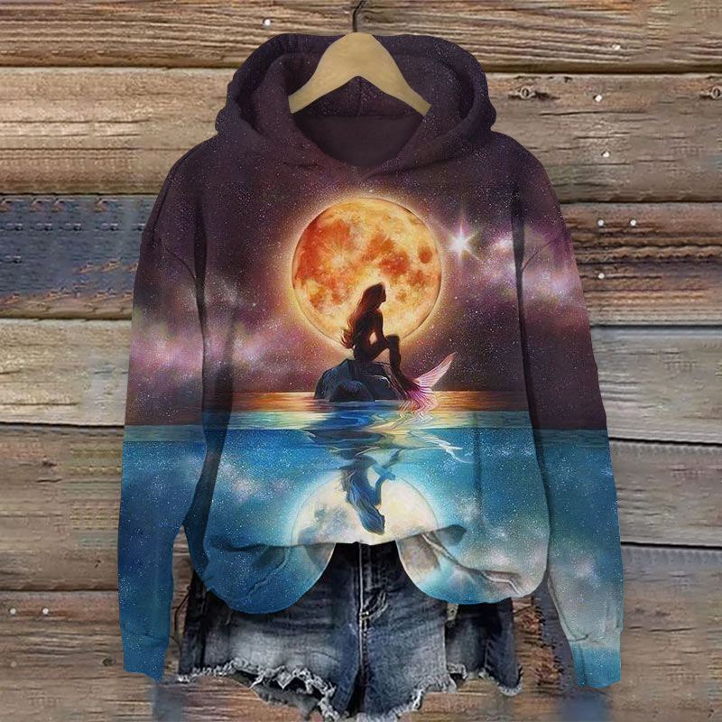 Dashingsoul Fantasy Moon Mermaid Print Hoodie
