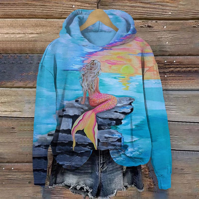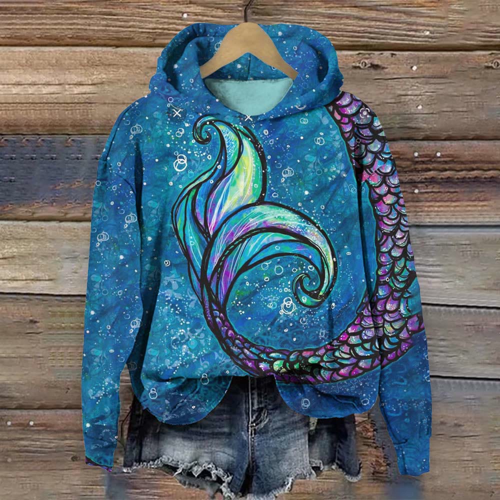 Vintage Mermaid Tail Print Hoodie