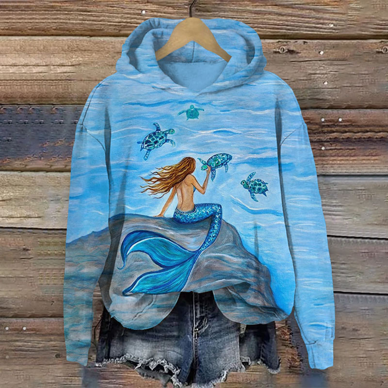 Dashingsoul Fantasy Mermaid Turtle Oil Painting Art Print Hoodie