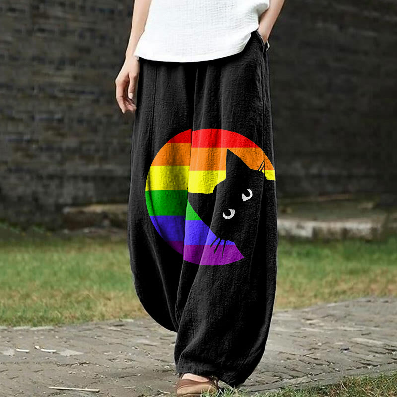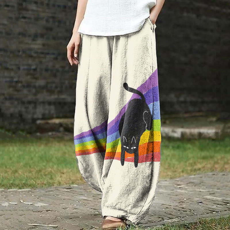 Dashingsoul Rainbow And Black Cat Print Casual Pants