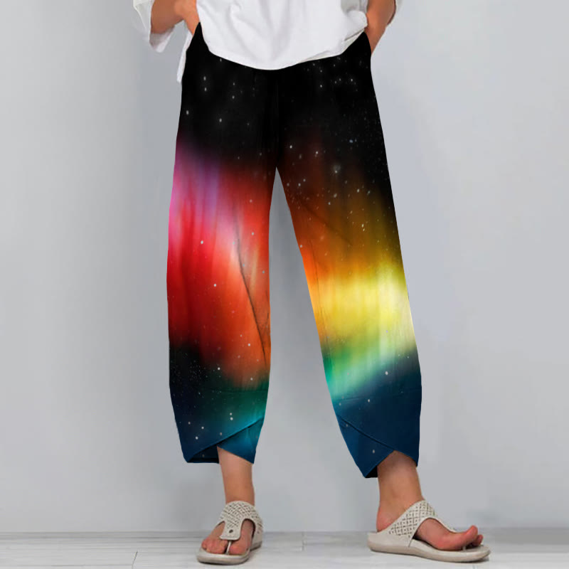 Rainbow Striped Starry Universe Art Printed Casual Pants