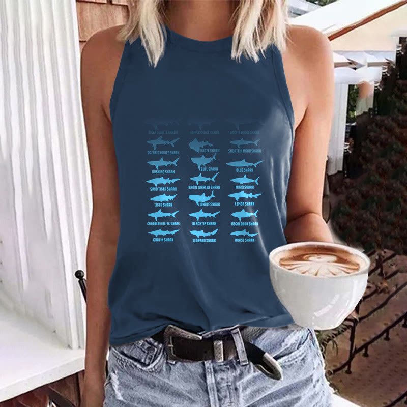 Dashingsoul Shark Species Art Print Crew Neck Tank Top