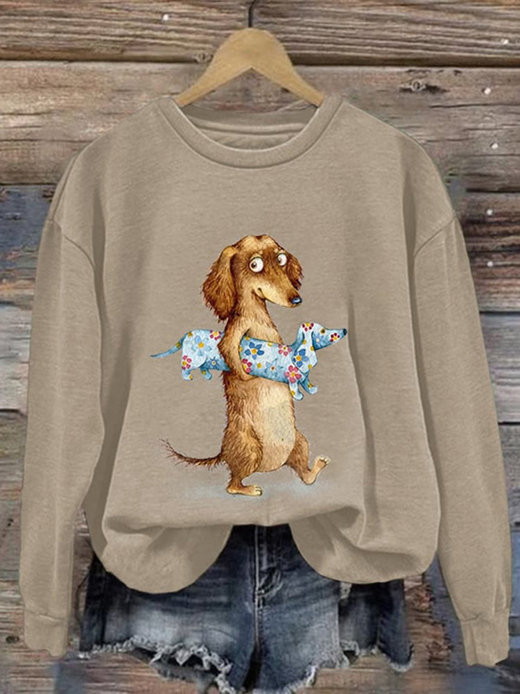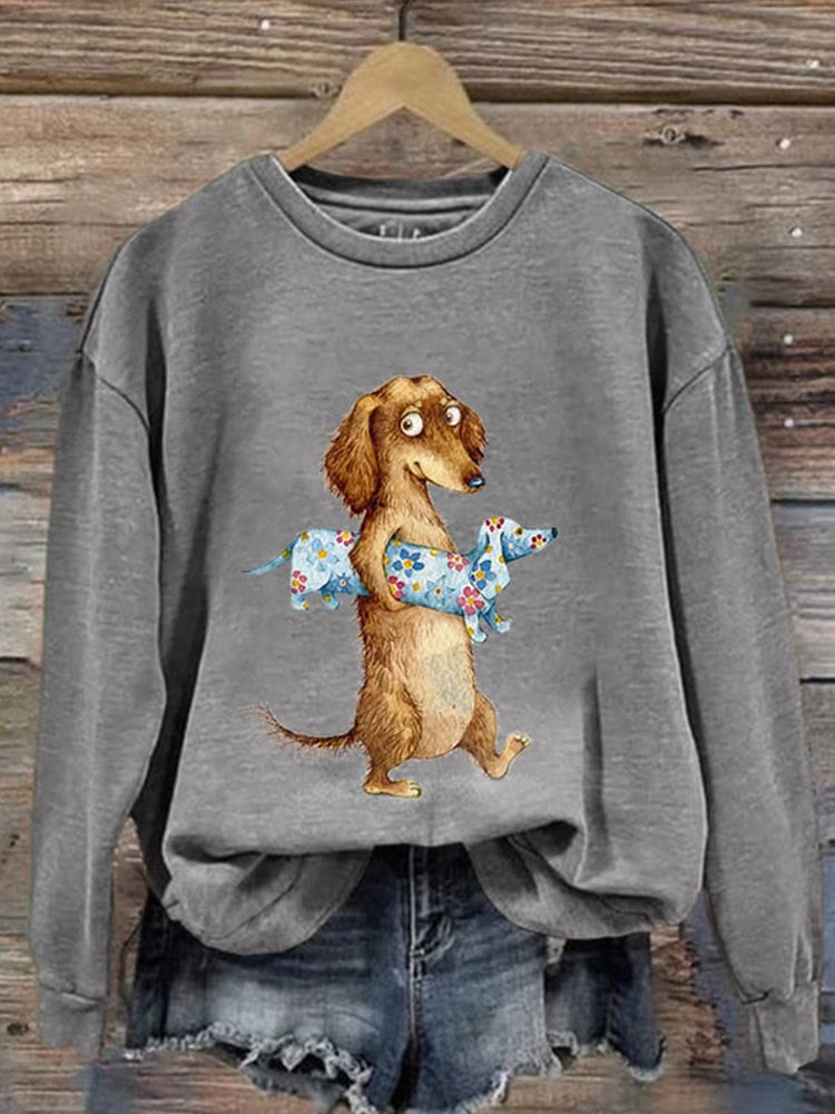 Dashingsoul Cute Dachshund Print Casual Long Sleeve Sweatshirt