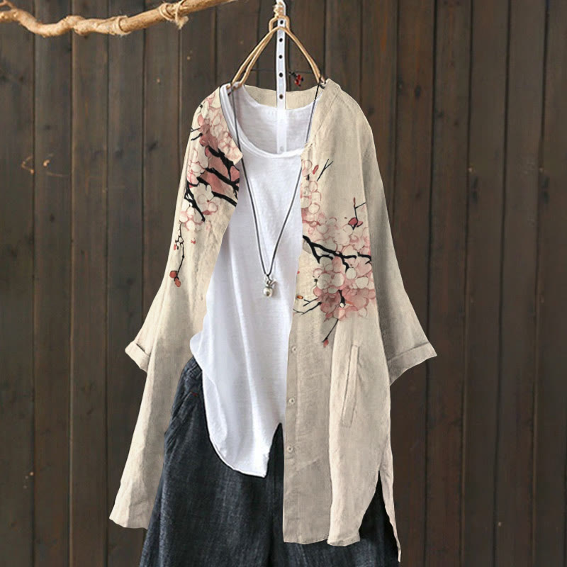 Dashingsoul Japanese Art Style Floral Cat Print Cardigan