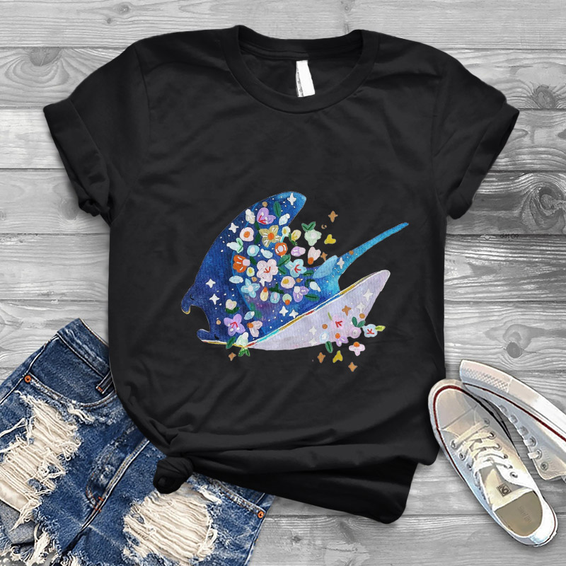 Dashingsoul Women's Dreamy Cute Floral Manta Ray Print Casual T-shirt