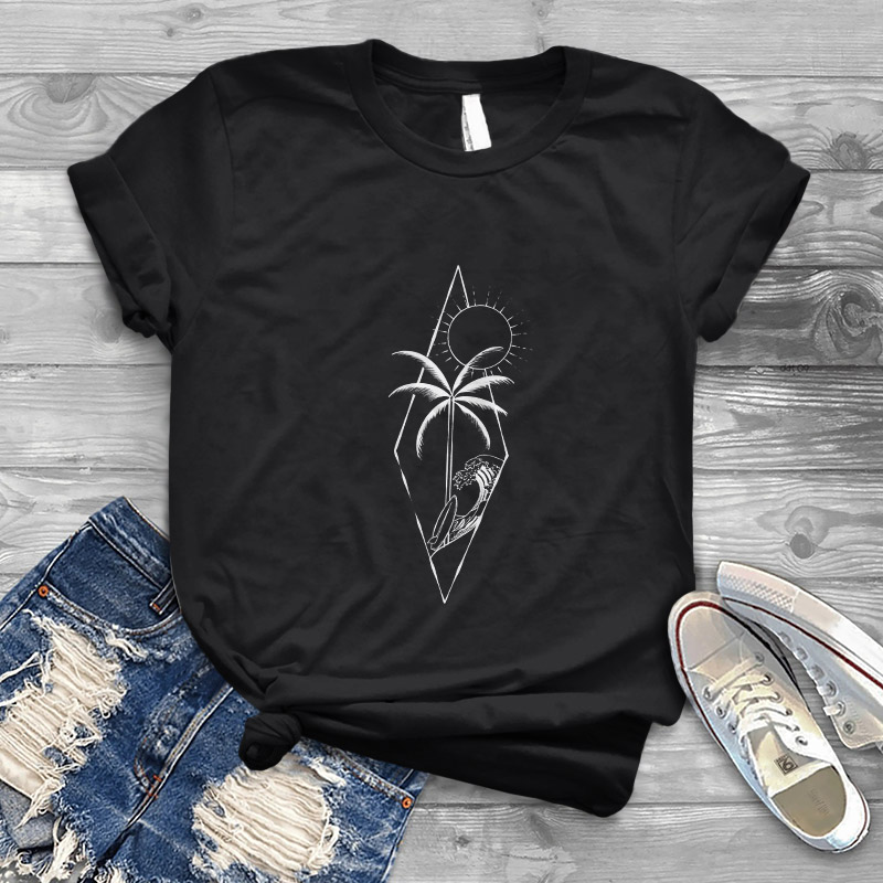 Dashingsoul Women's Simple Tropical Sunset Line Art Print Casual T-shirt