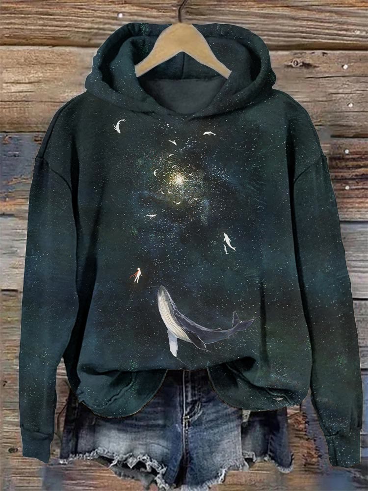 Dashingsoul Fantasy Starry Sky Whale Print Casual Hoodie