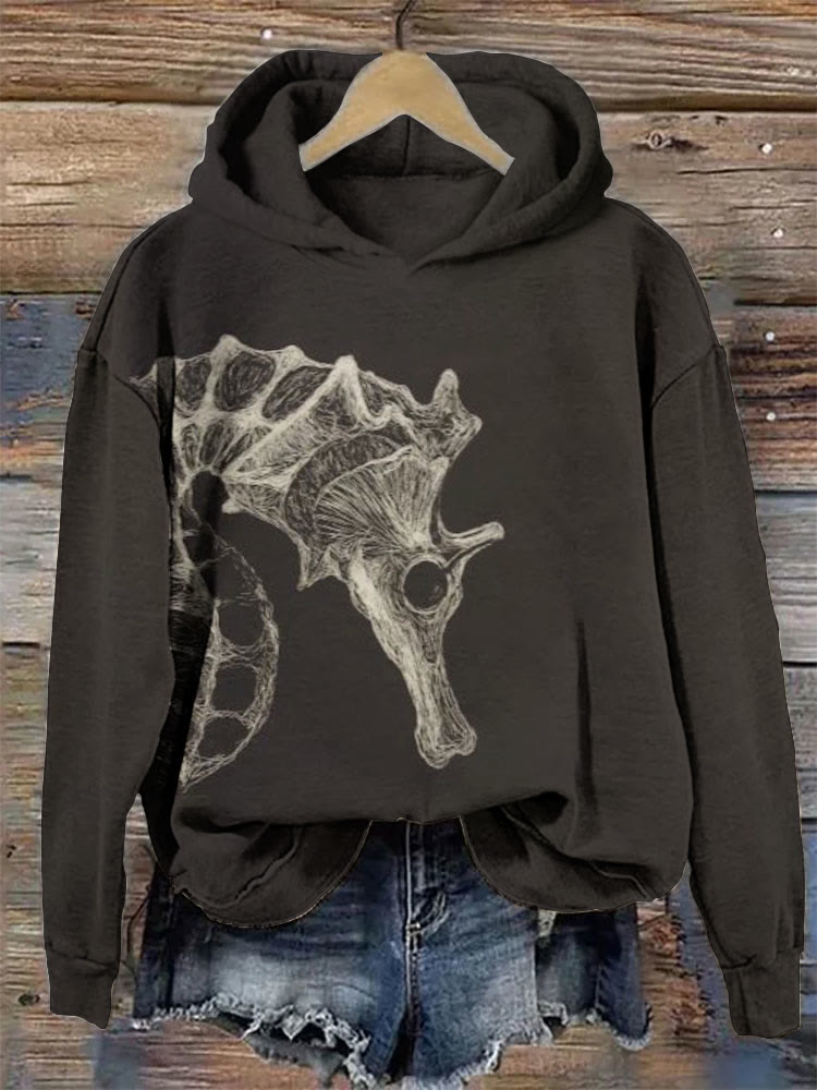 Dashingsoul Contrast Color Seahorse Oil Painting Print Sweatshirt