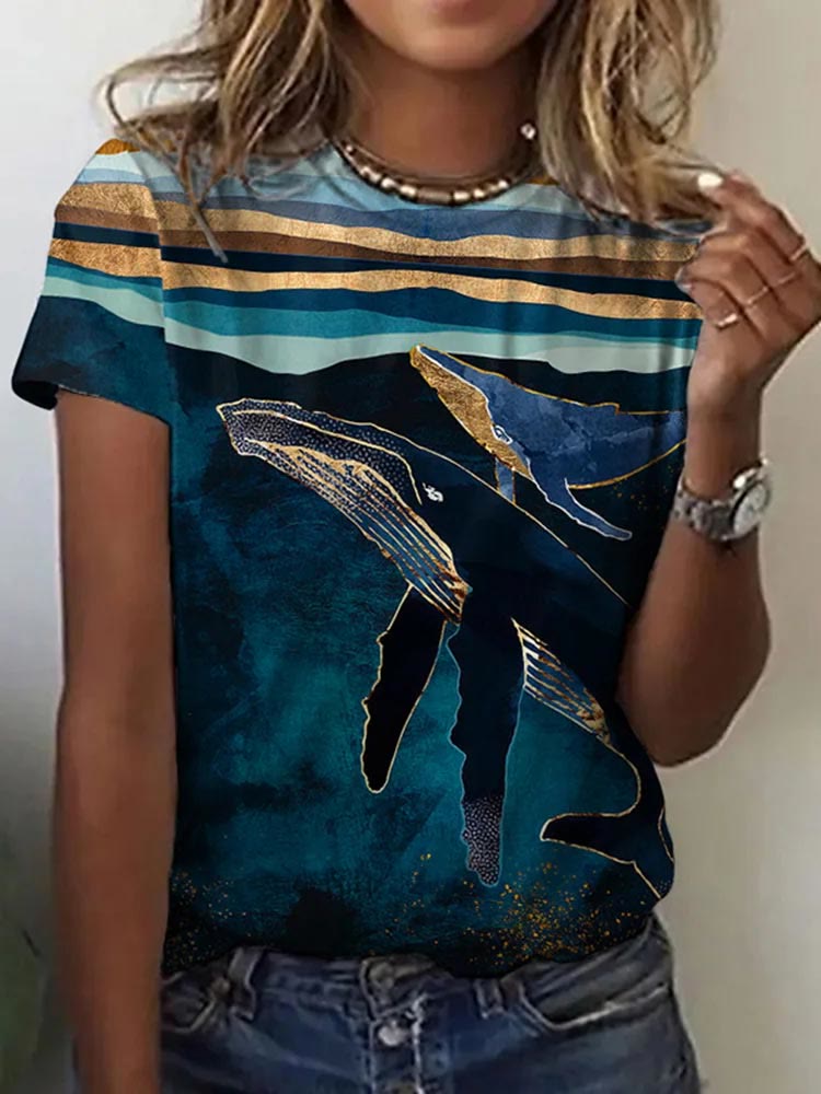 Dashingsoul Oil Painting Whale Print Short Sleeve T-shirt