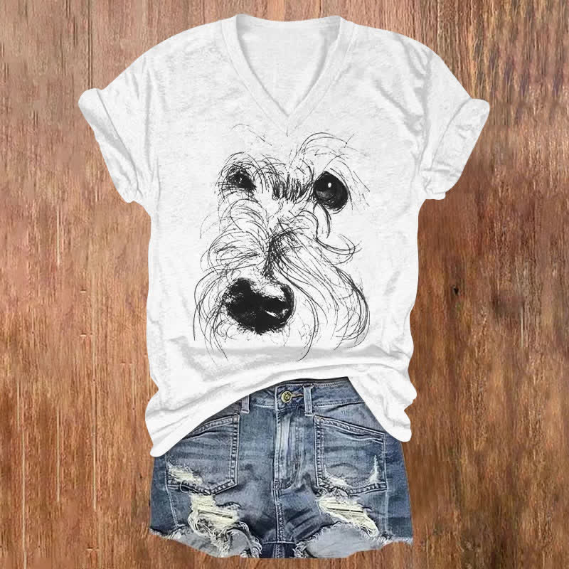 Dashingsoul Fuzzy Dog Face Art Print V-neck T-shirt