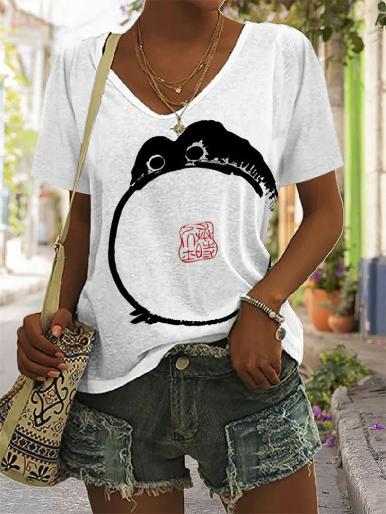 Dashingsoul Casual Turtle Print V-neck T-shirt