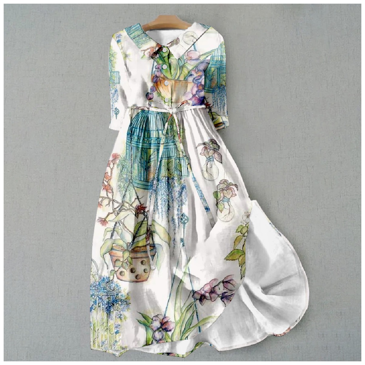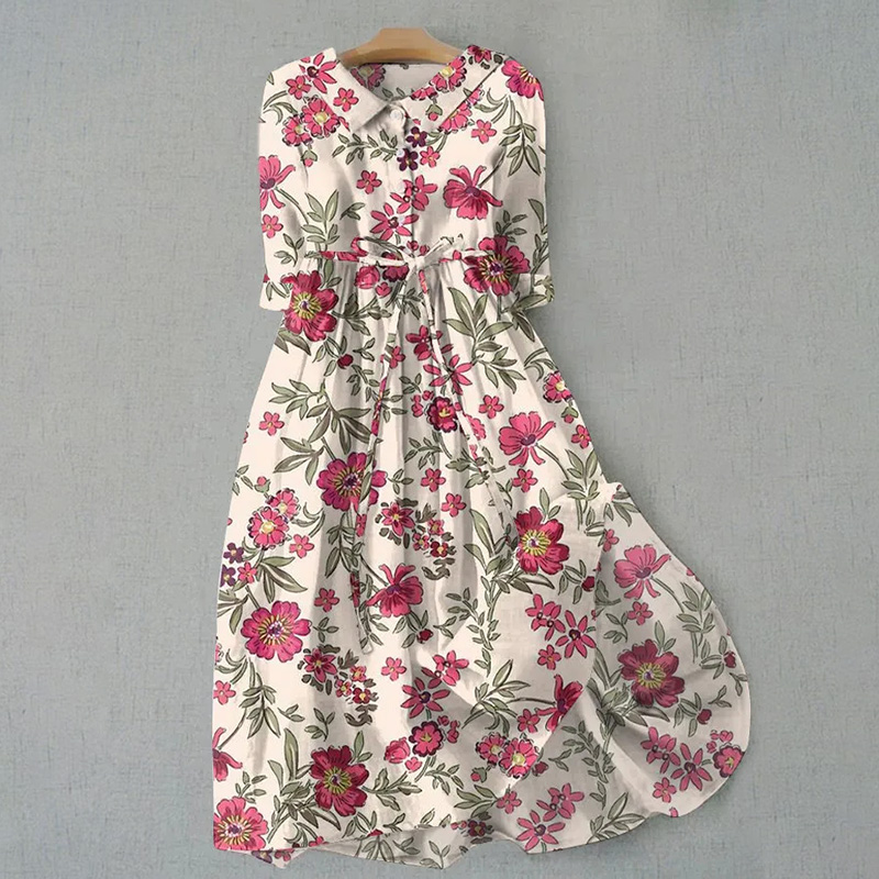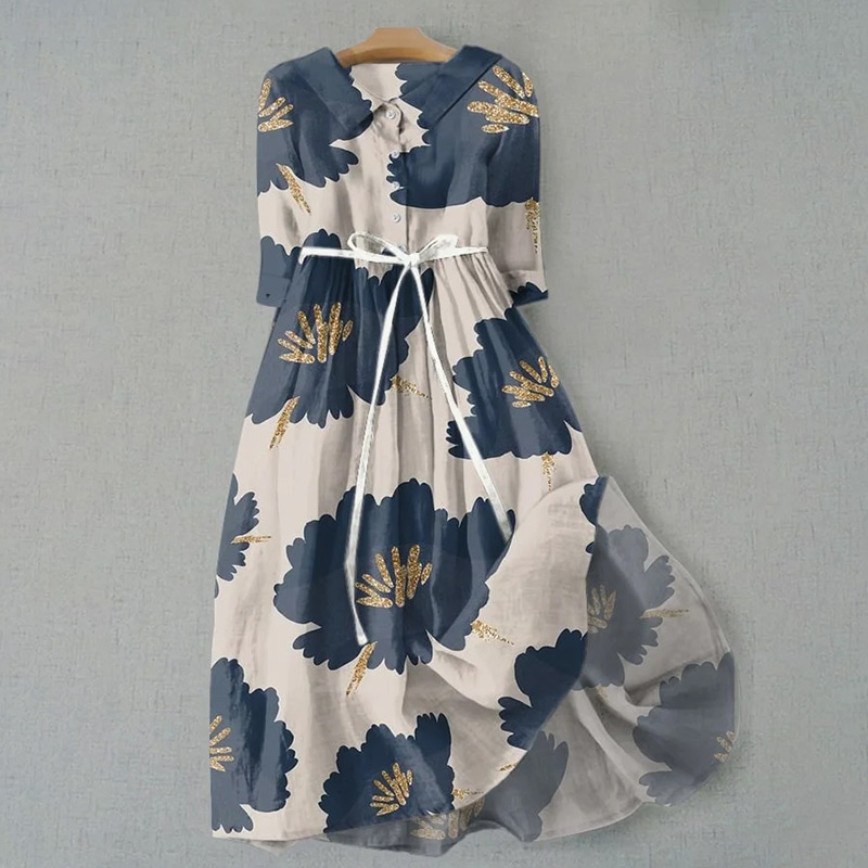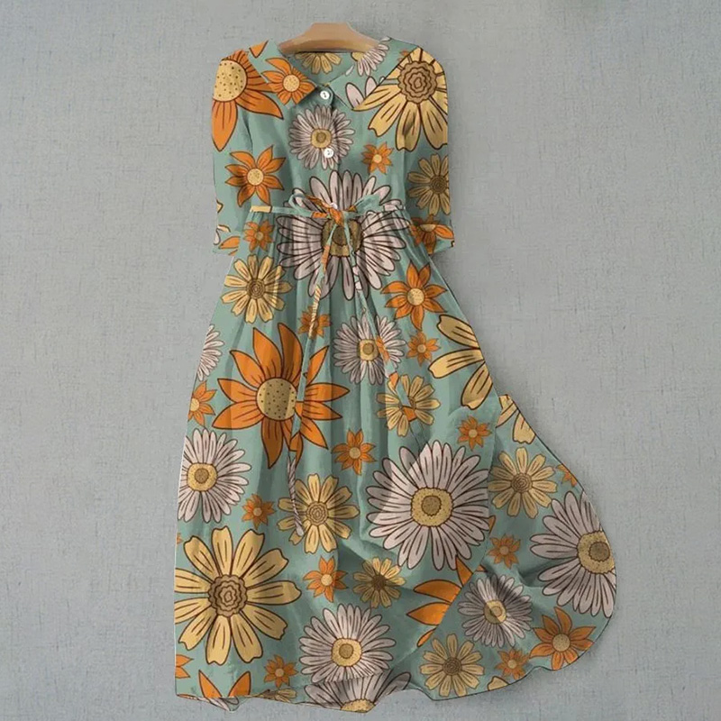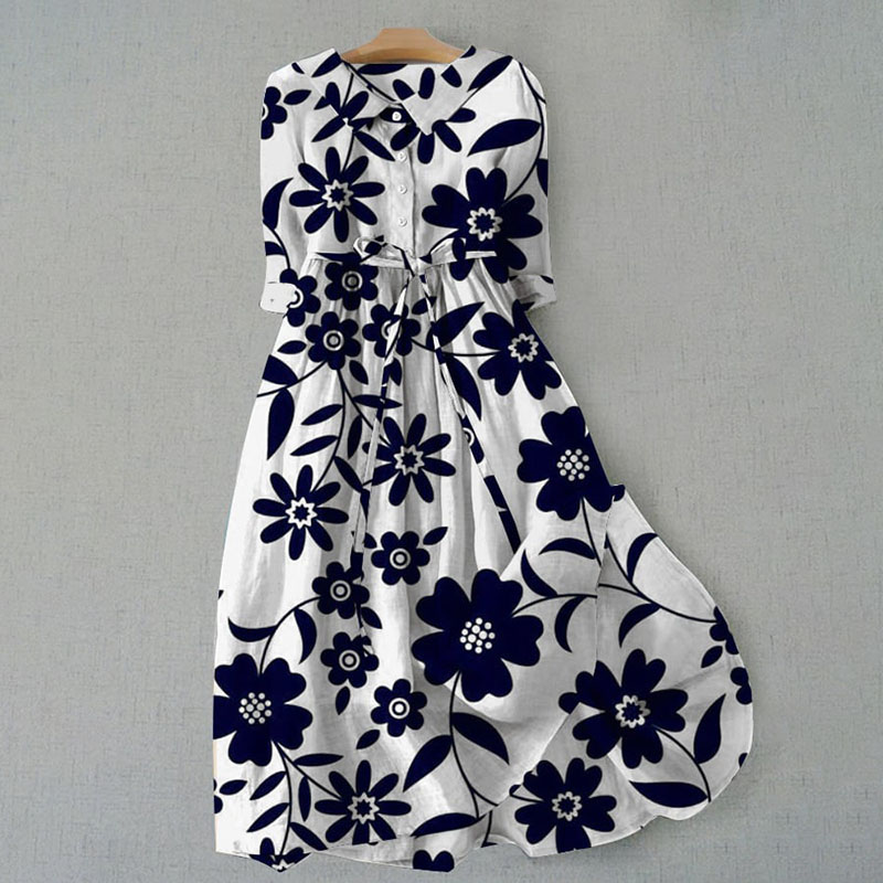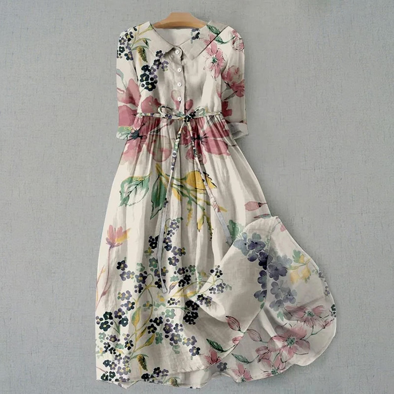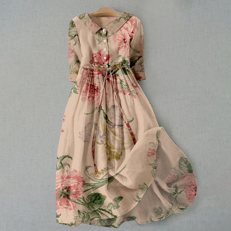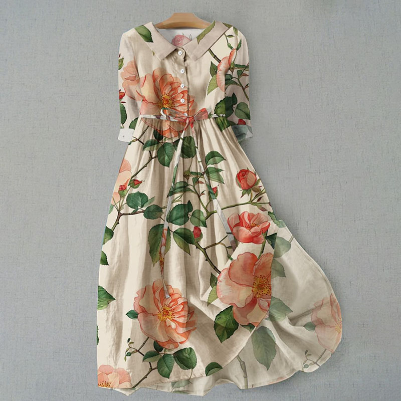 Women's Vintage Botanical Floral Design Print Casual Lapel Dress