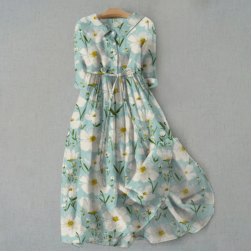 Women's Elegant Literary Floral Print Casual Lapel Dress