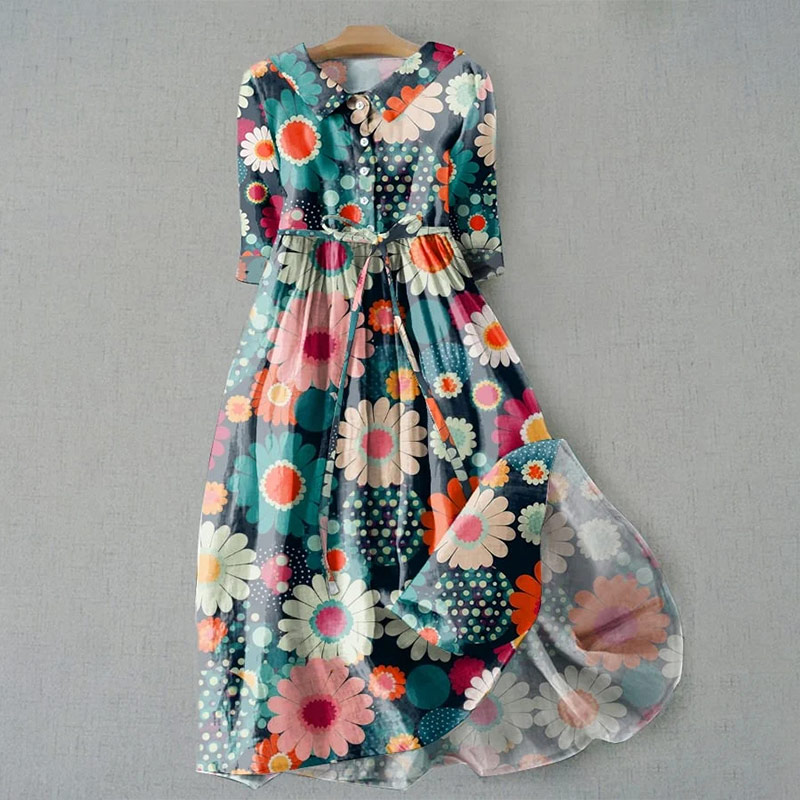 Dashingsoul Women's Vintage Multicolor Floral Print Casual Lapel Dress