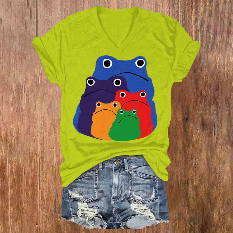 Cascading Rainbow Japanese Frog Print T-shirt